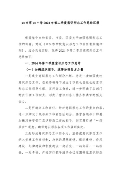 【七哥公文】2024年:xx市第xx中学2024年第二季度意识形态工作总结汇报+更多免费公文+VX:QiGeGongWen2024