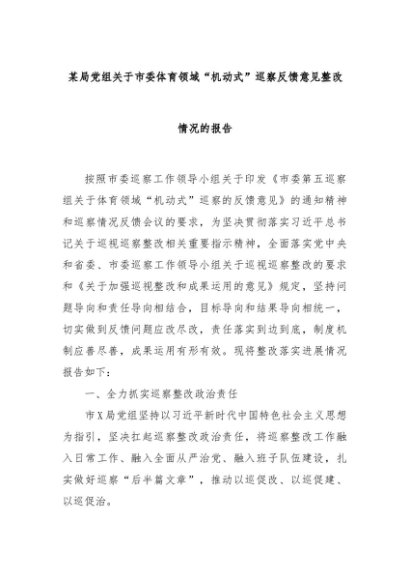 【七哥公文】2024年:某局党组关于市委体育领域“机动式”巡察反馈意见整改情况的报告+更多免费公文+VX:QiGeGongWen2024