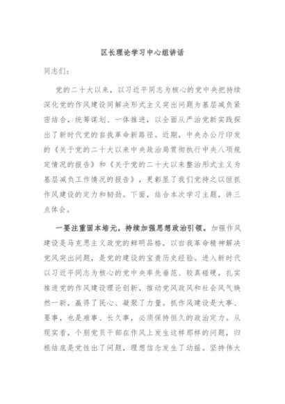 / 【七哥公文】2024年:区长理论学习中心组讲话+更多免费公文+VX:QiGeGongWen2024