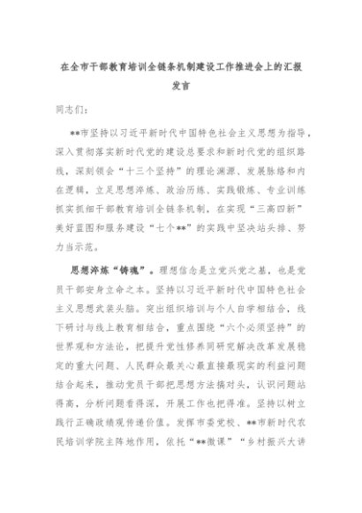 【七哥公文】2024年:在全市干部教育培训全链条机制建设工作推进会上的汇报发言+更多免费公文+VX:QiGeGongWen2024