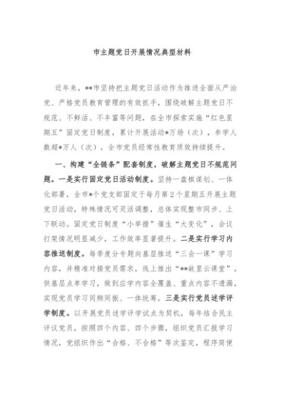 【七哥公文】2024年:市主题党日开展情况典型材料+更多免费公文+VX:QiGeGongWen2024
