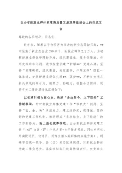 【七哥公文】2024年:在全省新就业群体党建高质量发展观摩推进会上的交流发言+更多免费公文+VX:QiGeGongWen2024
