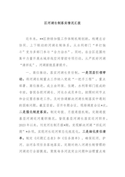 / 【七哥公文】2024年:区河湖长制落实情况汇报+更多免费公文+VX:QiGeGongWen2024