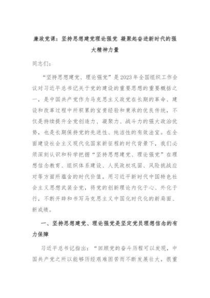【七哥公文】2024年:廉政党课:坚持思想建党理论强党 凝聚起奋进新时代的强大精神力量+更多免费公文+VX:QiGeGongWen2024