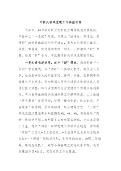 / 【七哥公文】2024年:市新兴领域党建工作典型材料+更多免费公文+VX:QiGeGongWen2024
