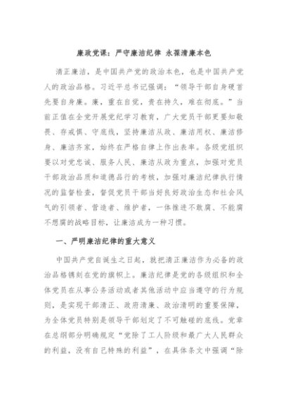 / 【七哥公文】2024年:廉政党课:严守廉洁纪律 永葆清廉本色+更多免费公文+VX:QiGeGongWen2024