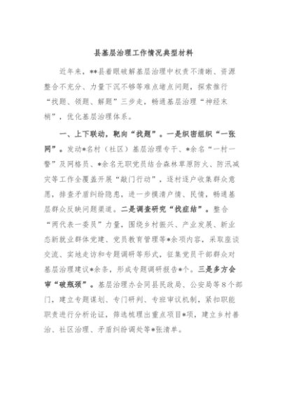 / 【七哥公文】2024年:县基层治理工作情况典型材料+更多免费公文+VX:QiGeGongWen2024