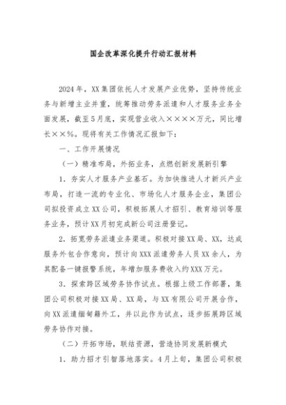 / 【七哥公文】2024年:国企改革深化提升行动汇报材料+更多免费公文+VX:QiGeGongWen2024