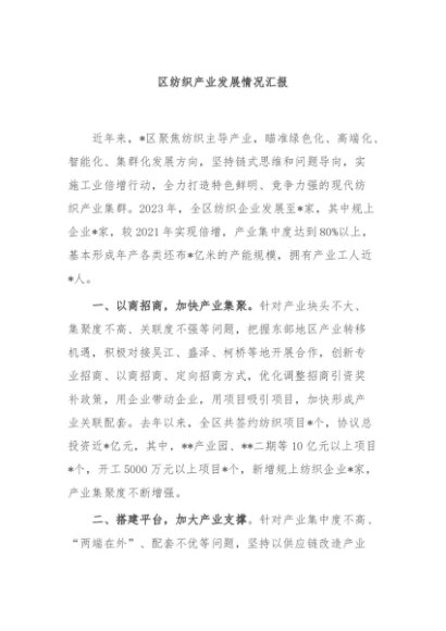/ 【七哥公文】2024年:区纺织产业发展情况汇报+更多免费公文+VX:QiGeGongWen2024