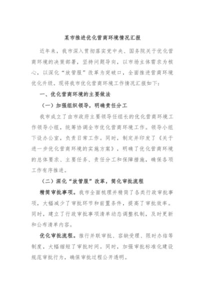 / 【七哥公文】2024年:某市推进优化营商环境情况汇报+更多免费公文+VX:QiGeGongWen2024