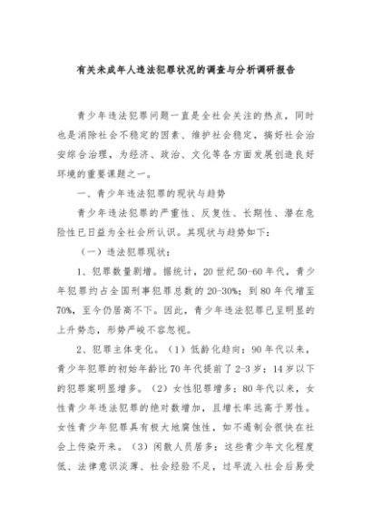 / 【七哥公文】2024年:有关未成年人违法犯罪状况的调查与分析调研报告+更多免费公文+VX:QiGeGongWen2024