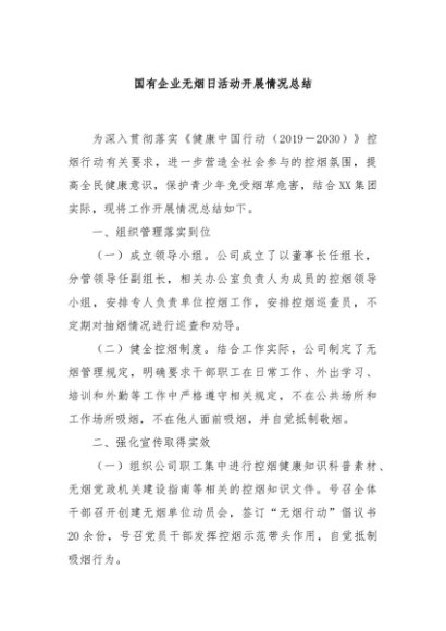 / 【七哥公文】2024年:国有企业无烟日活动开展情况总结+更多免费公文+VX:QiGeGongWen2024