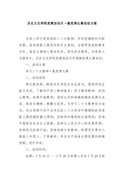 / 【七哥公文】2024年:历史文化学院党建活动月·微党课比赛活动方案+更多免费公文+VX:QiGeGongWen2024