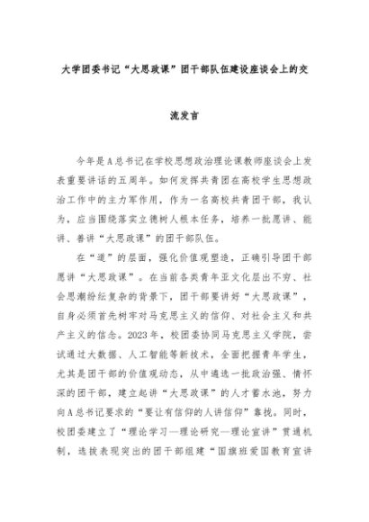 【七哥公文】2024年:大学团委书记“大思政课”团干部队伍建设座谈会上的交流发言+更多免费公文+VX:QiGeGongWen2024