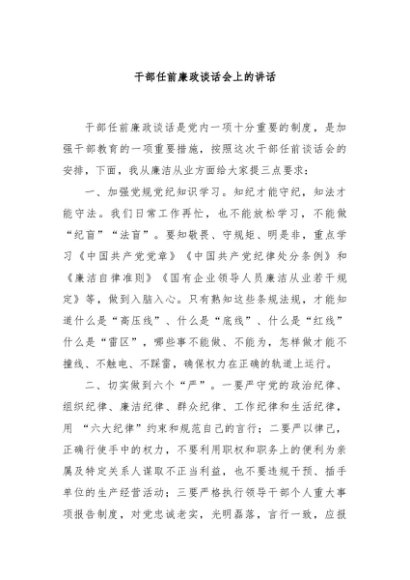 / 【七哥公文】2024年:干部任前廉政谈话会上的讲话+更多免费公文+VX:QiGeGongWen2024