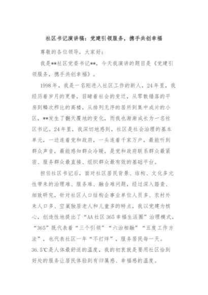 / 【七哥公文】2024年:社区书记演讲稿:党建引领服务,携手共创幸福+更多免费公文+VX:QiGeGongWen2024