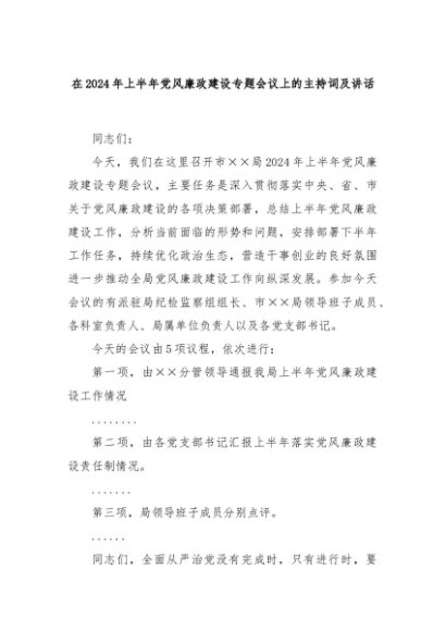 【七哥公文】2024年:在2024年上半年党风廉政建设专题会议上的主持词及讲话+更多免费公文+VX:QiGeGongWen2024