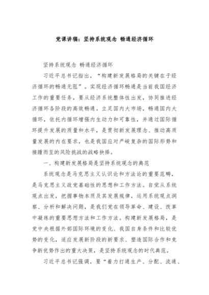 / 【七哥公文】2024年:党课讲稿:坚持系统观念 畅通经济循环+更多免费公文+VX:QiGeGongWen2024