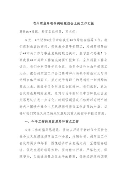 / 【七哥公文】2024年:在州质监局领导调研座谈会上的工作汇报+更多免费公文+VX:QiGeGongWen2024