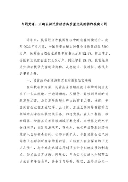 【七哥公文】2024年:专题党课:正确认识民营经济高质量发展面临的现实问题+更多免费公文+VX:QiGeGongWen2024
