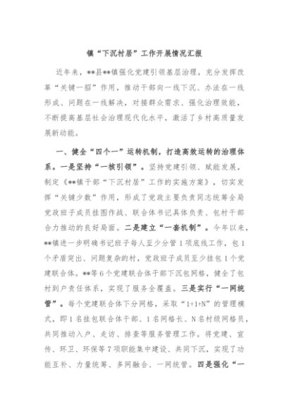 / 【七哥公文】2024年:镇“下沉村居”工作开展情况汇报+更多免费公文+VX:QiGeGongWen2024