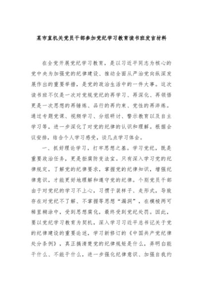 / 【七哥公文】2024年:某市直机关党员干部参加党纪学习教育读书班发言材料+更多免费公文+VX:QiGeGongWen2024