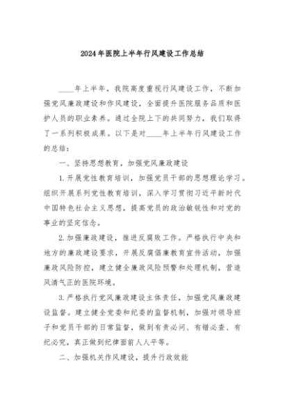 / 【七哥公文】2024年:2024年医院上半年行风建设工作总结+更多免费公文+VX:QiGeGongWen2024