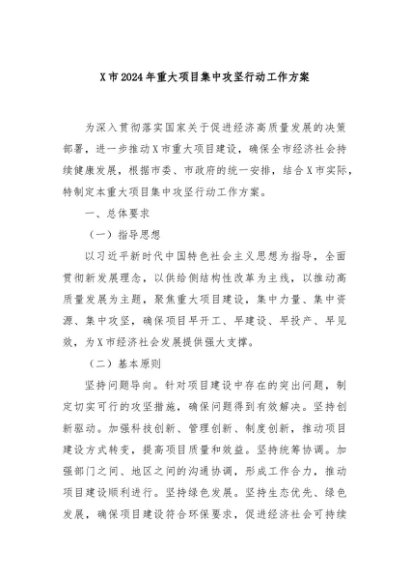 / 【七哥公文】2024年:X市2024年重大项目集中攻坚行动工作方案+更多免费公文+VX:QiGeGongWen2024