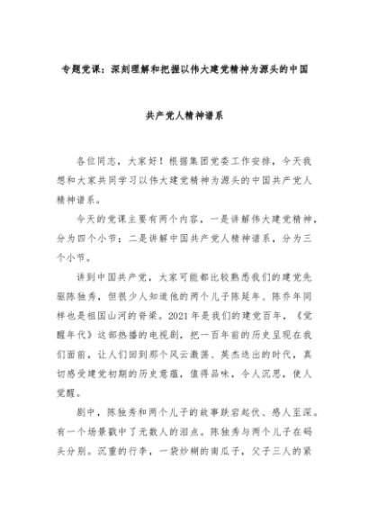 【七哥公文】2024年:专题党课:深刻理解和把握以伟大建党精神为源头的中国 共 产 党人精神谱系+更多免费公文+VX:QiGeGongWen2024
