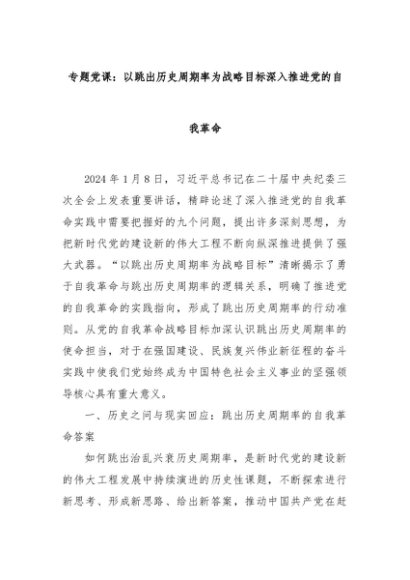 【七哥公文】2024年:专题党课:以跳出历史周期率为战略目标深入推进党的自我革命+更多免费公文+VX:QiGeGongWen2024