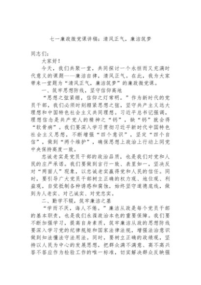 / 【七哥公文】2024年:七一廉政微党课讲稿:清风正气,廉洁筑梦+更多免费公文+VX:QiGeGongWen2024