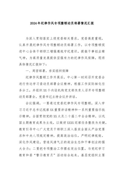 / 【七哥公文】2024年:2024年纪律作风专项整顿动员部署情况汇报+更多免费公文+VX:QiGeGongWen2024