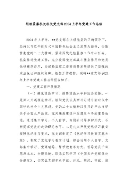 / 【七哥公文】2024年:纪检监察机关机关党支部2024上半年党建工作总结+更多免费公文+VX:QiGeGongWen2024
