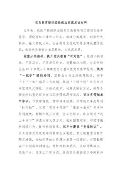 / 【七哥公文】2024年:党员教育培训经验做法交流发言材料+更多免费公文+VX:QiGeGongWen2024