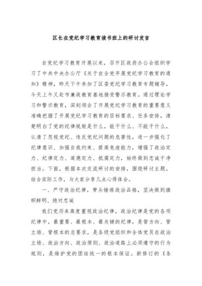 / 【七哥公文】2024年:区长在党纪学习教育读书班上的研讨发言+更多免费公文+VX:QiGeGongWen2024