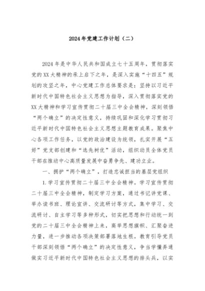 / 【七哥公文】2024年:2024年党建工作计划(二)+更多免费公文+VX:QiGeGongWen2024