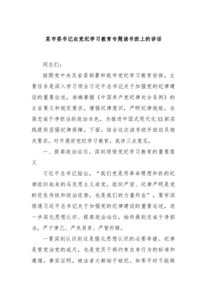 / 【七哥公文】2024年:某市委书记在党纪学习教育专题读书班上的讲话+更多免费公文+VX:QiGeGongWen2024