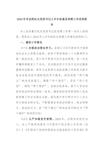 【七哥公文】2024年:2024年市法院机关党委书记上半年抓基层党建工作述职报告+更多免费公文+VX:QiGeGongWen2024