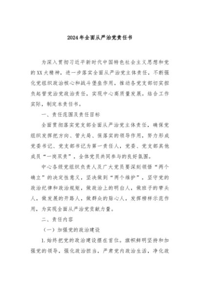 / 【七哥公文】2024年:2024年全面从严治党责任书+更多免费公文+VX:QiGeGongWen2024