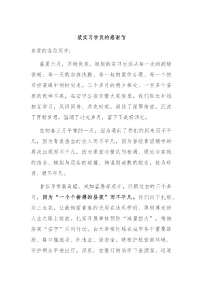 【七哥公文】2024年:致实习学员的感谢信+更多免费公文+VX:QiGeGongWen2024