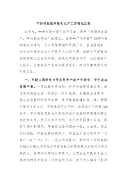 / 【七哥公文】2024年:市供销社服务粮食生产工作情况汇报+更多免费公文+VX:QiGeGongWen2024