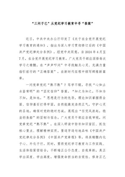 / 【七哥公文】2024年:“三问于己”从党纪学习教育中寻“答案”+更多免费公文+VX:QiGeGongWen2024
