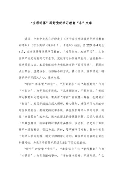 / 【七哥公文】2024年:“全程运算”写好党纪学习教育“小”文章+更多免费公文+VX:QiGeGongWen2024