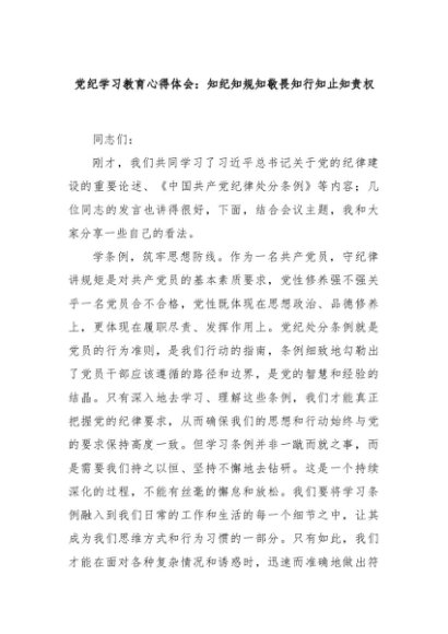 【七哥公文】2024年:党纪学习教育心得体会:知纪知规知敬畏知行知止知责权+更多免费公文+VX:QiGeGongWen2024