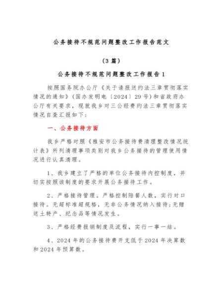 / 【七哥公文】2024年:(3篇)关于公务接待不规范问题整改工作报告范文+更多免费公文+VX:QiGeGongWen2024