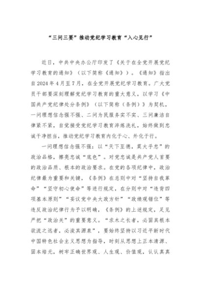 / 【七哥公文】2024年:“三问三要”推动党纪学习教育“入心见行”+更多免费公文+VX:QiGeGongWen2024