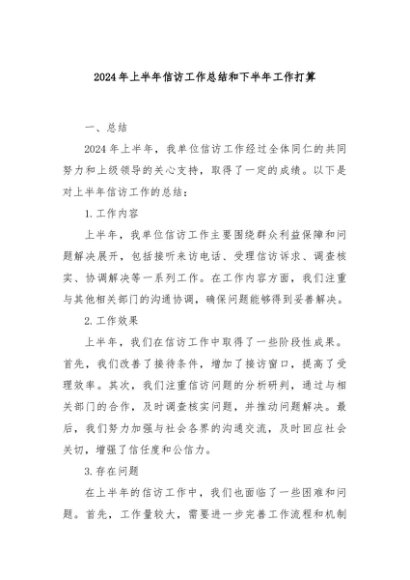 / 【七哥公文】2024年:2024年上半年信访工作总结和下半年工作打算+更多免费公文+VX:QiGeGongWen2024