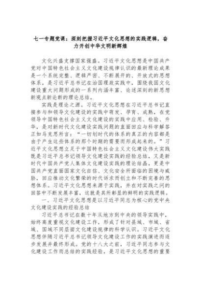 【七哥公文】2024年:七一专题党课:深刻把握习近平文化思想的实践逻辑,奋力开创中华文明新辉煌+更多免费公文+VX:QiGeGongWen2024