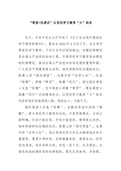 / 【七哥公文】2024年:“课堂+沉浸式”让党纪学习教育“火”起来+更多免费公文+VX:QiGeGongWen2024