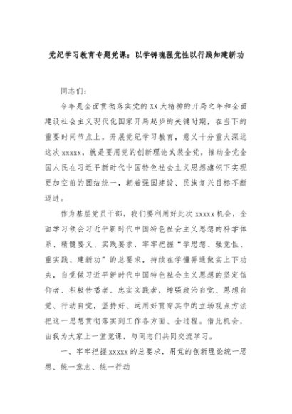 【七哥公文】2024年:党纪学习教育专题党课:以学铸魂强党性以行践知建新功+更多免费公文+VX:QiGeGongWen2024